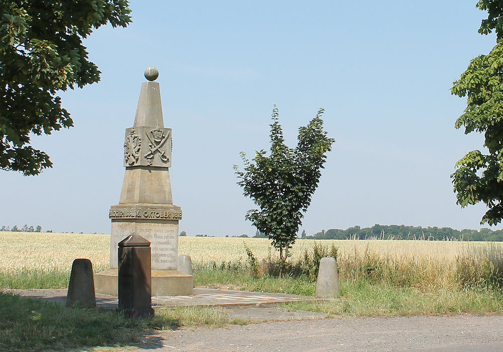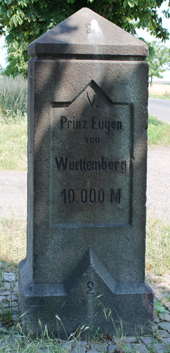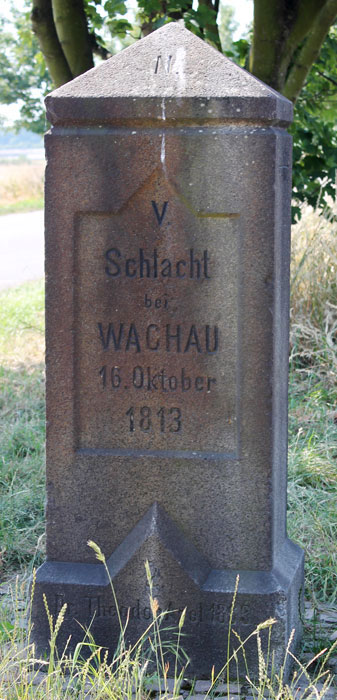 Der Apelstein erinnert an die Schlacht am 16.10.1813 bei Wachau, in deren Verlauf Prinz Eugen von Württemberg die 3. Kolonne führte und nördlich von Güldengossa Stellung bezog. | |