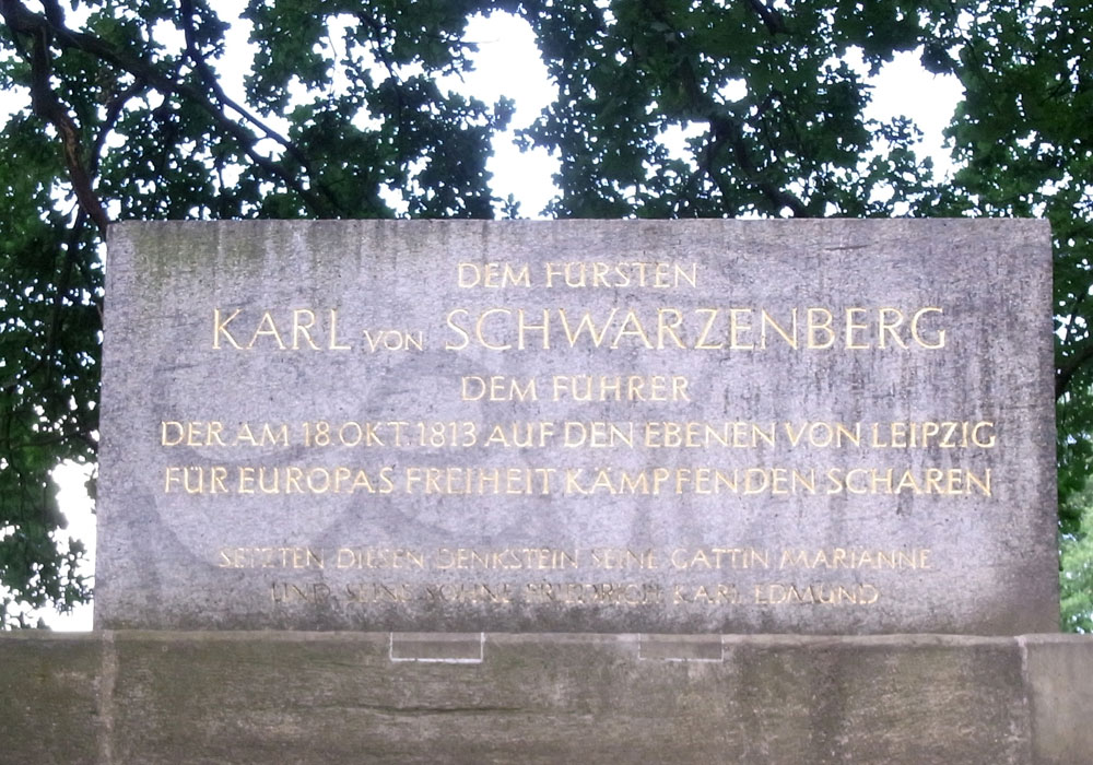 Der Gedenkstein an den Oberkommandierenden der Verbündeten Armeen Karl von Schwarzenberg wurde 1838 errichtet und befindet sich in Leipzig-Meusdorf im Park an der Prager Straße |