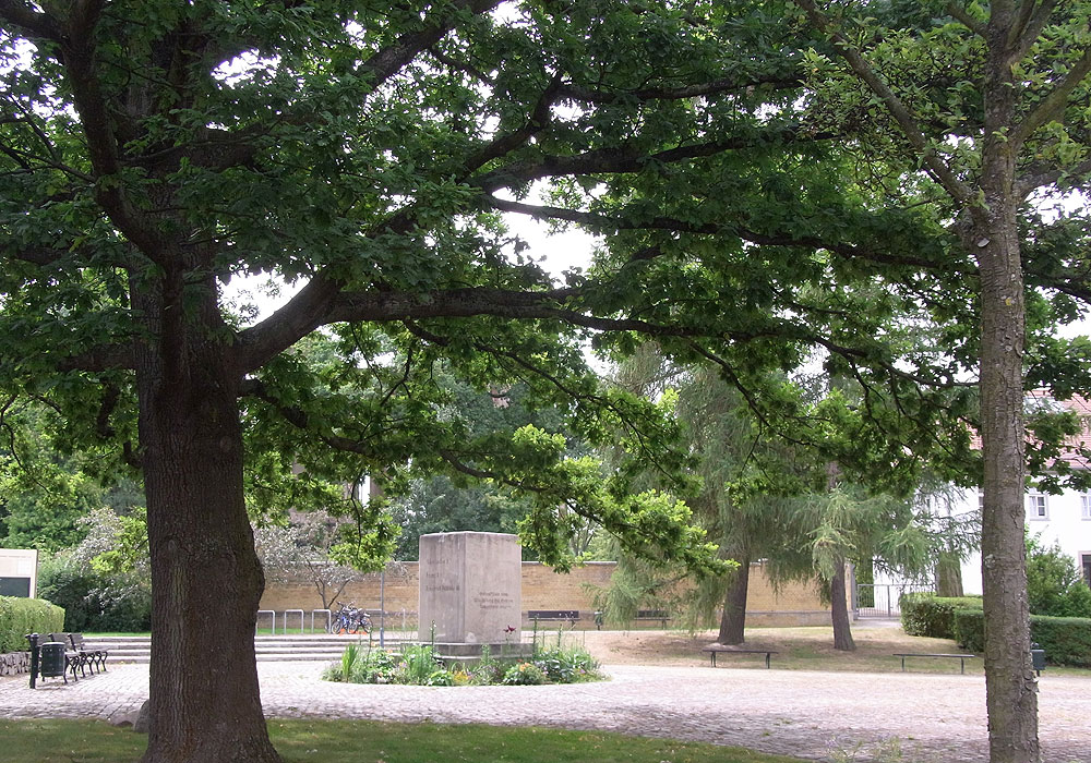 Der Gedenkstein wurde 19.10.1854 auf dem Wachtberg bei Göhren eingeweiht, 1982 jedoch bergbaubedingt auf den Platz vor der Kirche in Wachau umgesetzt. |