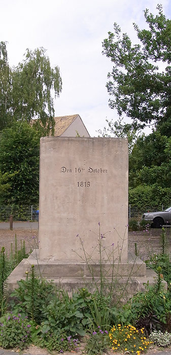 Das Denkmal kennzeichnete den Standortes der verbündeten Monarchen während der Schlacht bei Wachau am 16.10.1813. | |