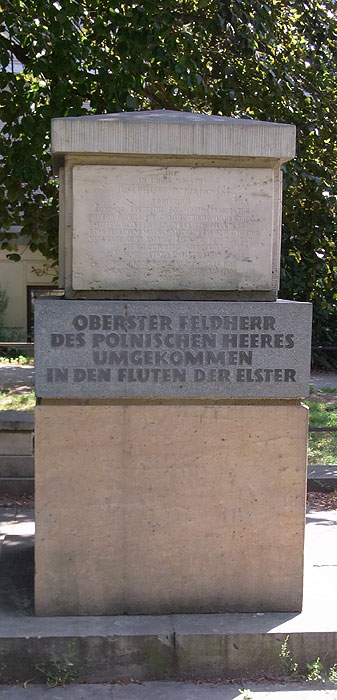 Nach der vorzeitigen Sprengung der Brücke über den Elstermühlgraben ertrank Poniatowski am 19.10.1813 bei dem Versuch diesen schwimmend zu überwinden. | |