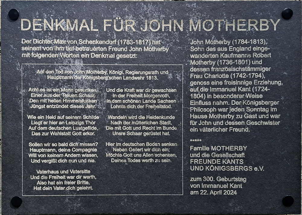 John Motherby kämpfte Königsbergischen Landwehrbataillon unter Friccius und fiel fiel bei der Erstürmung des Grimmaischen Tores in Leipzig am 19.10.1813. | |