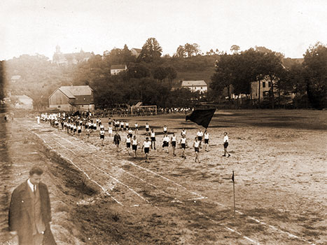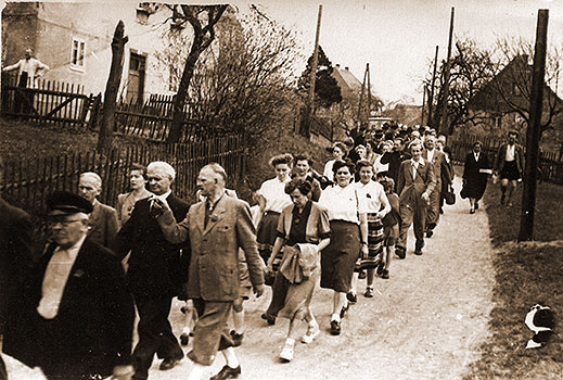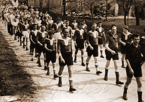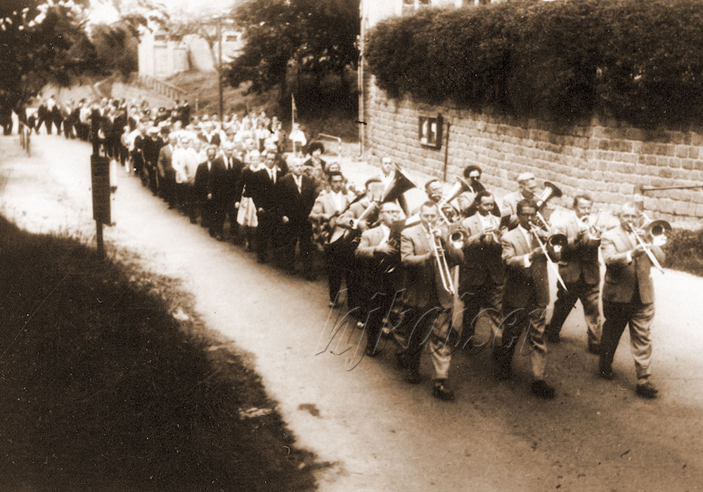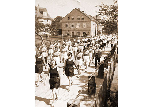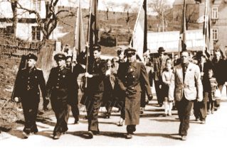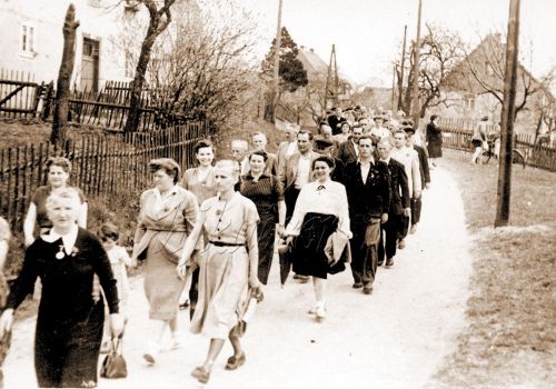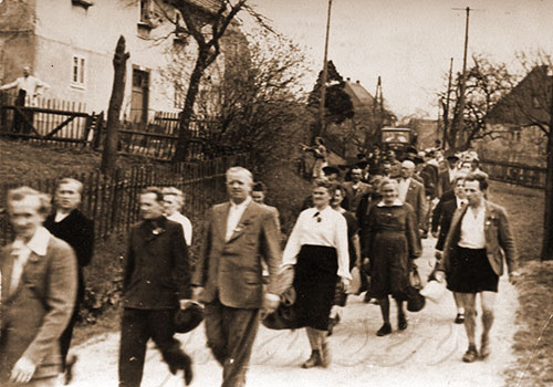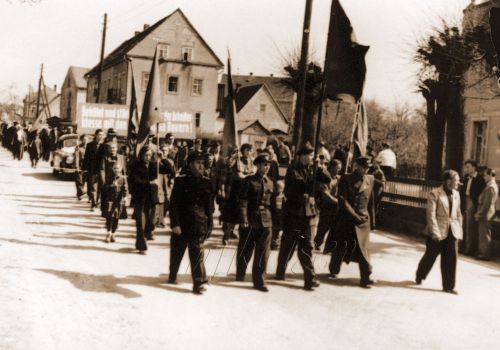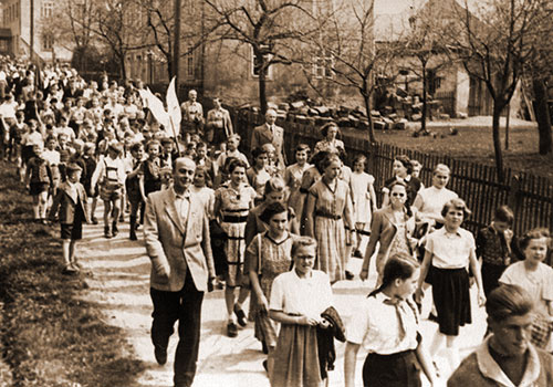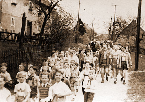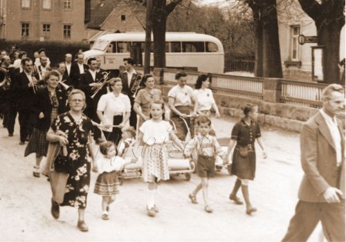 Maiumzug in den 1950-er Jahren kurz für dem Sportplatz