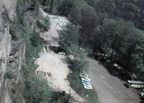Blick von der Festung auf den Parkplatz,